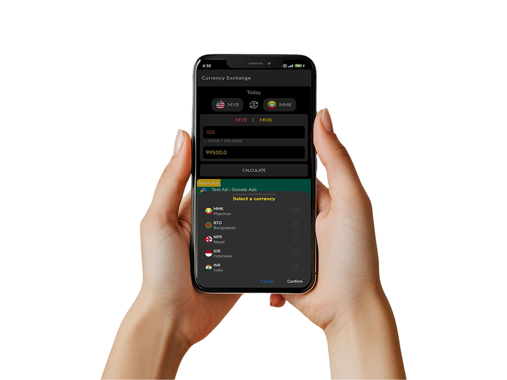 An Android app that provides live exchange rates for MYR to MMK, BDT, NPR, IDR, and INR.