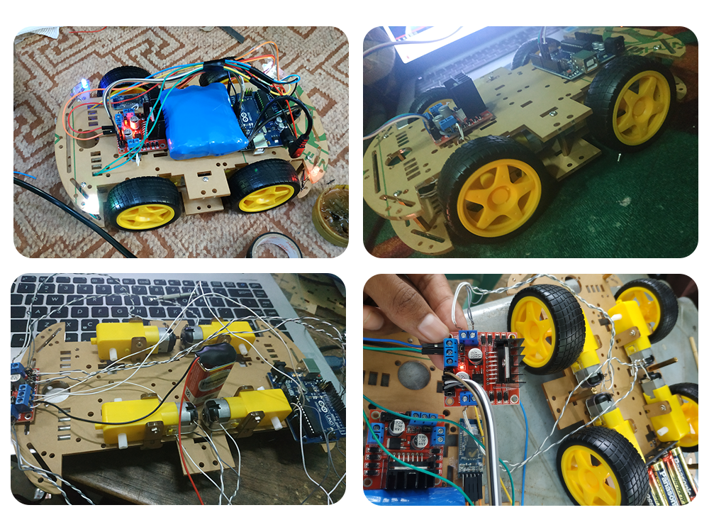 An Arduino-powered smart car that can be controlled via a mobile phone using Bluetooth/WiFi. This project demonstrates IoT and embedded systems, allowing users to navigate and operate the car remotely.